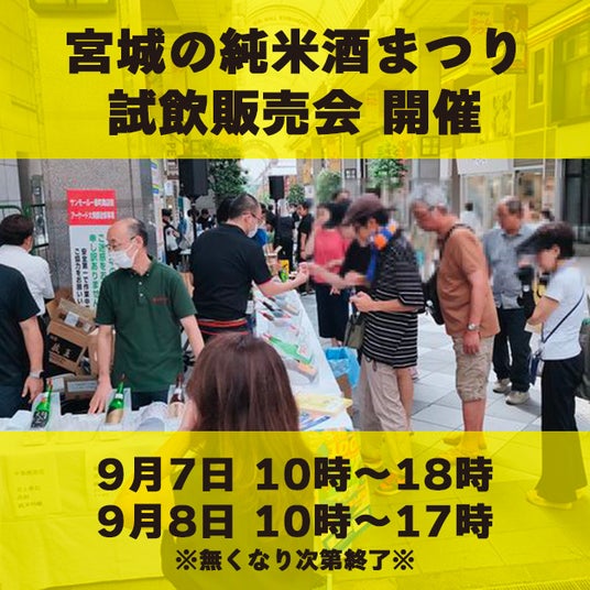 宮城県酒造組合は、2024年9月7日(土)~8日(日)に藤崎本館前(サンモール一番町側)を会場に、「宮城の純米酒まつり 秋の集い」(試飲販売会)を開催します。