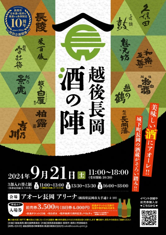 日本一の酒蔵数を誇る新潟県の中でも最多の酒蔵が集まる長岡市で、2024年9月21日(土)に「越後長岡酒の陣」を開催します。