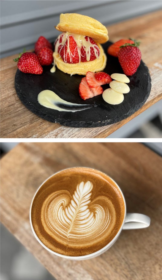 近藤氏は世界大会への出場経験もあるバリスタ。近藤氏が手掛ける本格ラテアートや、田村市産の旬のフルーツを使用したふわふわもちもち食感のパンケーキをぜひご堪能ください。