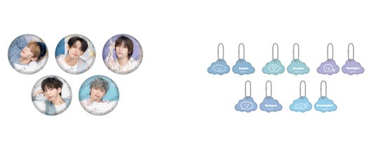 缶バッジA (ランダム5種)、マシュマロキーホルダー (ランダム5種)