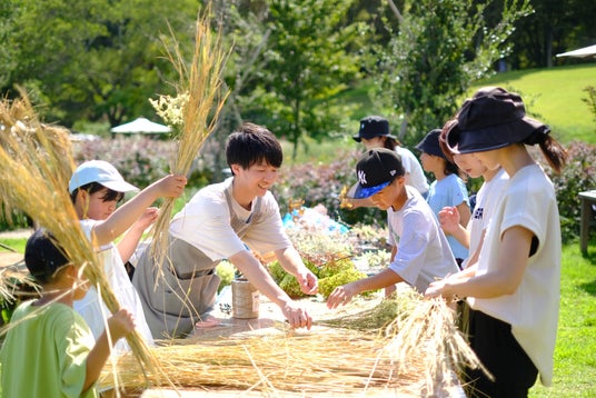 参加費無料!フラワーパークにスタッフと一緒に、園内を秋の装いに飾るホウキ作りに参加しよう。参加希望者はイベント開催時間にレストランテラスにお集まりください。
