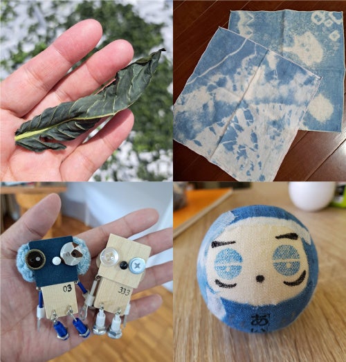 ASOVIVA|藍染・藍だるま作り自分の畑で育てた藍を収穫し乾燥させた葉で作った染液をつかい藍染体験が出来ます。 輪ゴムやビー玉などで模様をつけたハンカチなどを染めましょう。ワークショップでは藍だるまがつくれます。