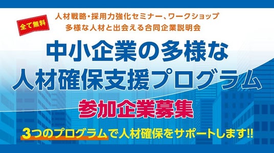 人材戦略の策定や採用力の強化に向けた「セミナー(9/24 オンライン)」「ワークショップ(10/2 東京都)」、多様な人材と出会える「合同企業説明会(11/24 東京都)」を開催します。