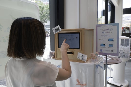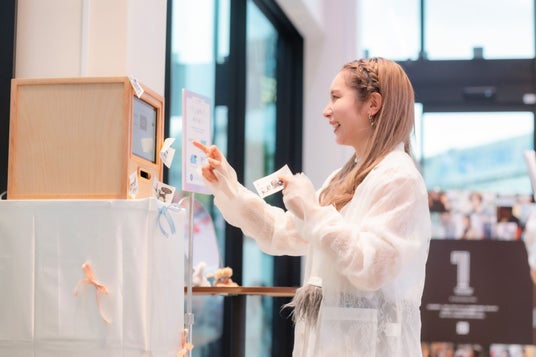 体験コンテンツのコーナーには、二重シミュレーションのお試しコーナーや「らしい」目元研究所、特製ガチャガチャ、韓国で人気のレシート写真機をご用意。