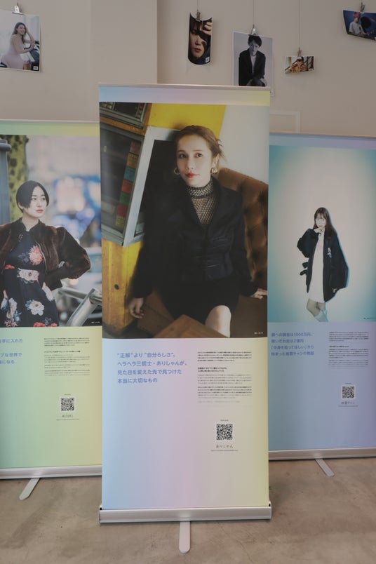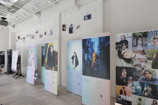 会場入口付近には、ウェブメディア「1-ONE-」を説明するパネルや本イベントの趣旨を説明するパネルを設置。メインである100名の写真は、大小様々なサイズでイベント会場を包むように展示しました。ウェブメディア「1-ONE-」の説明パネルや写真展示にはQRコードを設置し、気になる記事はすぐにウェブでご覧いただけるような工夫を施しています。