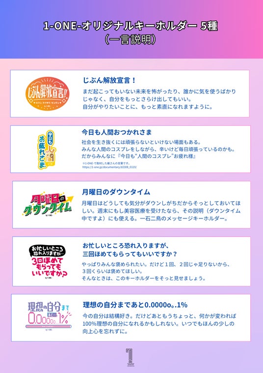 「1-ONE-」オリジナルキーホルダー5種の説明