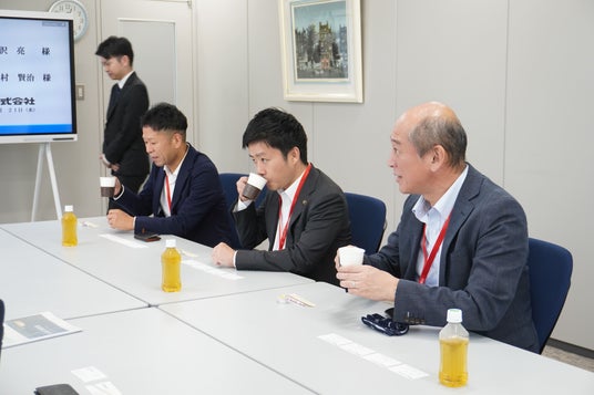 滝沢市長による企業訪問は、開設以降すでに2回実施されており、今回は三井不動産レジデンシャルリース株式会社様、日本トーター株式会社様の2社を訪問しました。滝沢市長は、BYSN SANJO ROASTERYにて利用企業が焙煎したオリジナルコーヒーでおもてなしされ、企業に対して三条市に進出して雇用創出に尽力いただいていることに、感謝の言葉を述べられました。