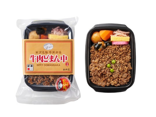 「駅弁屋 祭」人気ナンバーワンの商品である米沢駅弁「牛肉どまん中」を、このショップのために(有)新杵屋と冷凍駅弁として共同開発しました。また、同様に弊社にて開発を進めた「炭火焼風牛たん弁当」も新発売いたします。