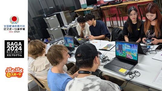 ゲームクリエイターを目指す学生の皆さんにeスポーツを認知・理解していただけるよう、eスポーツに関する講義を実施したもので、同校に通うアジア、ヨーロッパ、北南米、中東など18か国からの留学生も参加しました。講座の最後には現在オンラインで予選開催中の「全国都道府県対抗eスポーツ選手権 2024 SAGA ぷよぷよ部門」に挑戦。eスポーツの世界を体験しました。