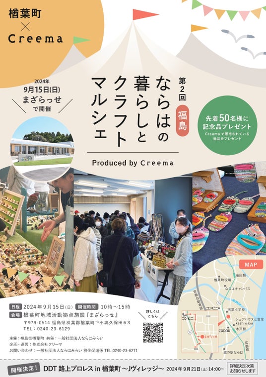 また、このツアーに参加する移住検討のクリエイターの方々による第2回『福島・ならはの暮らしとクラフトマルシェ』を2024年9月15日(日)に開催する運びとなりましたので、お取り計らいの程、何卒よろしくお願い申し上げます。