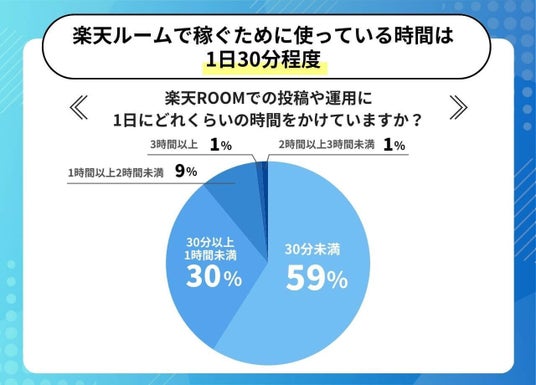 ・楽天ROOMで稼ぐために使っている時間を聞いたところ、半数以上の人は「1日30分程度」と回答しました。