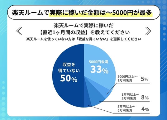 楽天ROOMで収益を得たことがある人は全体の5割程度