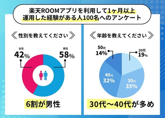 株式会社Earth Ship(読み:アースシップ、本社:茨城県常総市、代表取締役社長:谷 俊介 )の、グループ会社である株式会社物販総合研究所 (本社:神奈川県横浜市、代表取締役社長:千家 直人 以下、物販総合研究所)は、物販ビジネスや副業について発信しています。本記事では、楽天ROOM(ルーム)(以下、楽天ROOM)で稼げるかについて調べるため、楽天ROOMを利用して商品紹介の投稿を行い、1ヶ月以上運用した経験がある100人を対象にアンケート調査を行いました。