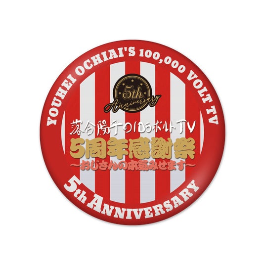 5周年感謝祭と番組ロゴを合わせた限定デザインの大きい缶バッジです。