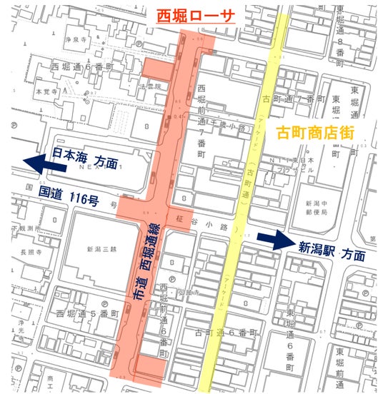 「西堀ローサ」は、新潟市中央区古町地区の西堀通の地下にある地下街です。昭和51年に建築された「西堀ローサ」は、高度経済成長期の交通渋滞の解消、中心市街地の活性化など、これまで一定の都市機能を果たしてきました。