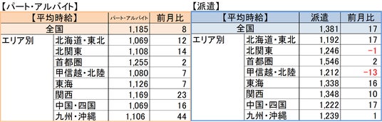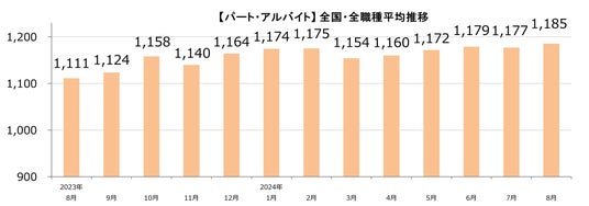 【パート・アルバイト】全国・全職種平均時給は1,185円。前月比+8円。前年同月比+74円。