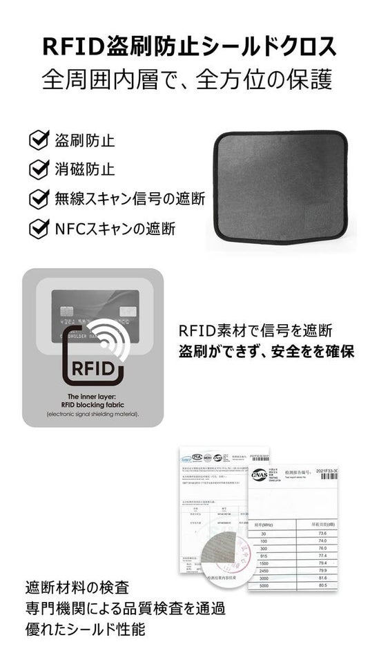 - 【RFID盗刷防止シールドクロス】を全周囲に内装!大切な情報をスキミングから守ります!!