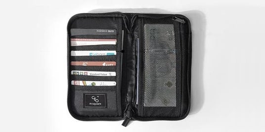 大容量で、出張や旅行に必要なチケット、パスポート、ICカード、クレジットカード、コイン、鍵などを整理して収納できます。スマートフォンも収納可能です。