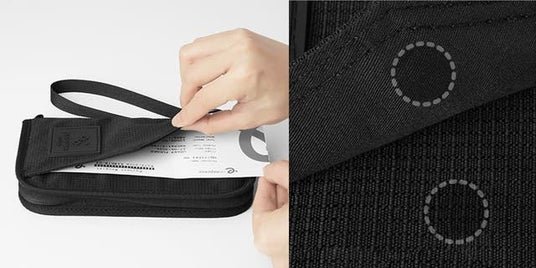 ケースの外側にチケットを素早く取り出せる半開放式ポケットを取り付け、磁石でしっかりと固定できるデザインを採用しました。逆さにしても落ちにくいため、紛失の心配もなく、安心してご使用いただけます。