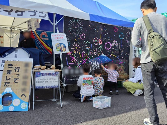 「花火を描こう!特大パネル」コーナーでは、夜空に見立てた特大パネルにご来場の皆様でシールを貼り、世界にひとつだけの特別な作品を仕上げていきます。