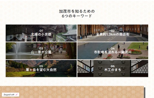 加茂市内の飲食店やおでかけスポット、地域の特性などの他に、加茂市の様々なコンテンツに関する特集記事も複数用意しております。