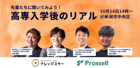 新潟校の開校を記念し、高専入学を目指す中学生を対象としたイベントを開催します。高専出身で起業家として活躍している4名が登壇し、高専で学ぶことの魅力や高専卒業後のキャリアについてざっくばらんにお話します。