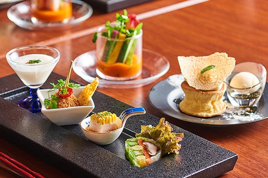 四季彩茶寮「旬香」素材がもつ旨みをいかした炙り・炭火&鉄板焼き料理をご用意しています。