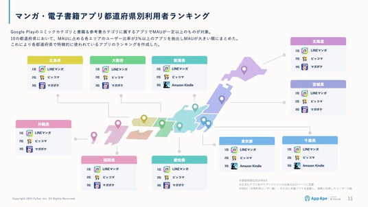 マンガアプリや電子書籍アプリ市場の概況、ユーザーの年代別分析、都道府県別分析などさまざまな視点でアプリデータを調査しました。