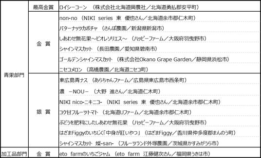 【青果部門】最高金賞1品 金賞6品 銀賞7品【加工品部門】金賞1品