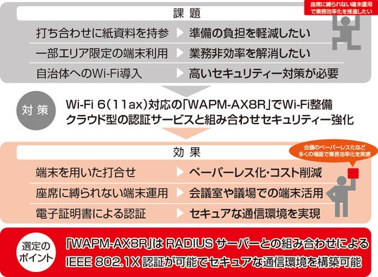 職員の業務効率化を目的に、インターネット接続系のWi-Fi利用を可能に。クラウド型の認証サービスとの組み合わせでセキュアなWi-Fi環境を構築