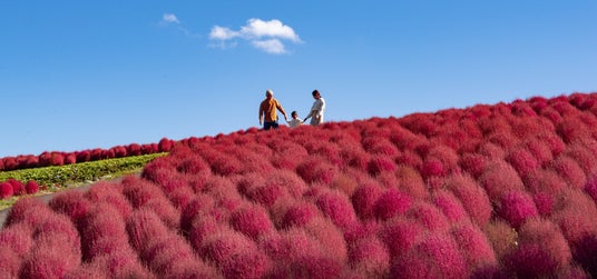 湯沢高原 一面の赤に染まるコキアの丘