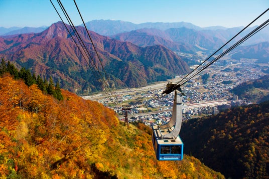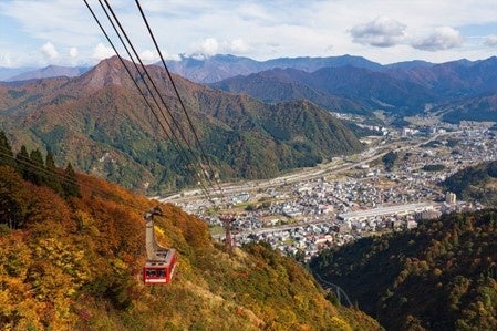 紅葉の季節の山々、湯沢町風景と湯沢高原ロープウェイ