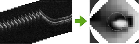 そこで、DeepEyeVisionでは、AIを用いて初期緑内障の診療精度向上ならびに検査の効率化を実現させる手法の研究開発に着手しました。具体的には、ディープラーニング技術を用い、OCT(光干渉断層計)で撮影された目の断層画像から視野を推測するプログラムを開発し、視野欠損の把握に必要な検査時間を大きく削減することで、患者ならびに医療機関の負担を軽減する(※3)ことを目指します。加えて、プログラムによって得られた定量的な計測結果を、患者ごとにデータベースとして蓄積していくことで、医師による治療方針の策定支援に活用する手法の開発も探索します。