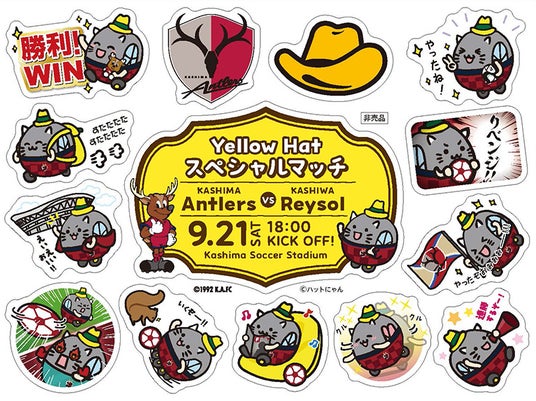 「イエローハット スペシャルマッチ」開催を記念して、試合当日に実施する来場者プレゼント企画「鹿BIG」とオンラインプレゼント企画「どこでも鹿BIG」に「イエローハット賞」が登場します。「鹿BIG」には恒例の「ユニフォーム着用ハットにゃん」のぬいぐるみに、スペシャルバージョンの「秋の全国交通安全運動 ハットにゃん」のぬいぐるみを加えた2匹セットをプレゼント。「どこでも鹿BIG」では、イエローハットハットトリック賞でおなじみのテンガロンハットのプレゼントがありますので、ぜひご応募ください!