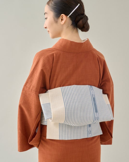 THE YARDにとっての片貝木綿は、様々な素材のきものが並ぶワードローブの中でも、無意識に選んでしまうお気に入りのワンピースのような、または、合わせやすいジーンズのような存在です。