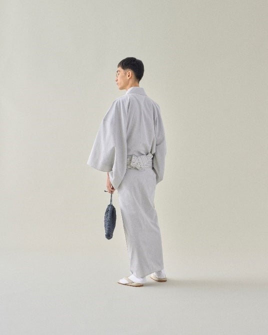きもの:片貝木綿 松煙染 薄灰 60,500円(税込・手仕上げミシン仕立て付き)