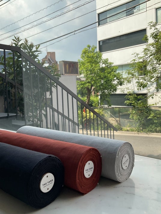 墨色は、実はタテ糸、ヨコ糸の色を変えて奥行を出し、淡すぎず、濃すぎず、THE YARDのための墨色を表現していただきました。