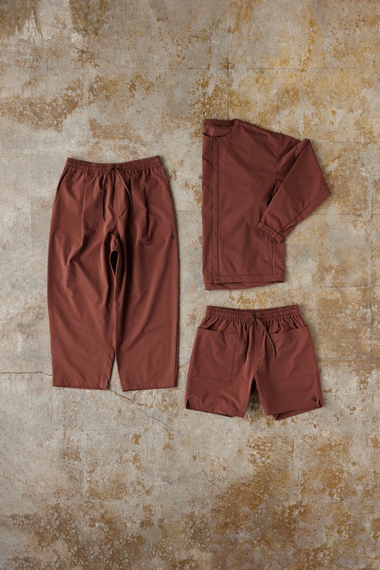 今回新たに、カーディガンタイプ、ワイドパンツタイプ、ショーツタイプの3アイテムを発売いたします。全てがユニセックス向けの製品となります。素材は軽量性とストレッチ性を両立するポリエステル素材となっています。北陸の素材を使って、新潟県の縫製工場で生産されている、日本製の製品となっています。