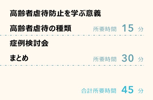 ・「高齢者虐待防止には、社会環境、家族、虐待者側、被虐待者側などと多方向の要因からアプローチしていく必要があることを再確認できました。深刻度や具体例の資料が特に参考になりました。ここで得た知識をふまえて、兆候を見逃さずに対応していきたいです」