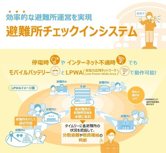- 特長 ・スタンドアロンでの動作 災害時でも電源やネットワークが遮断されている状況を想定し、シングルボードコンピュータのRaspberry Piを採用することで、スタンドアロンでの動作を実現・簡単な操作性 スマートフォン側に特別なアプリケーションのインストールは不要で、QRコードを読み込むだけで簡単にチェックインが可能・低コストでの導入 Raspberry Piの採用により、ハードウェアコストを大幅に削減し、多くの避難所に導入しやすい環境を整備