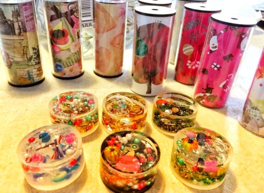 このイベントでは、色とりどりのビーズと和紙を使って自分だけの万華鏡を作ります。