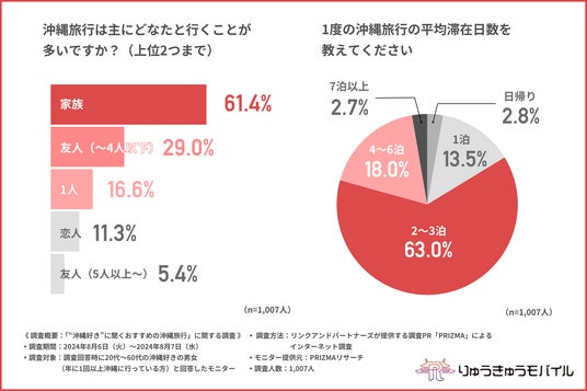 ここまでの調査で、沖縄旅行を誰とどれくらいの期間、楽しんでいるかが明らかになりました。