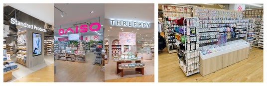 このたびオープンする 3 ブランドの複合店は、現在の DAISO シーモール下関店の 1.6 倍の総面積で、3 ブランド合計 588坪の広さです。JR 下関駅前の便利な立地にあるシーモールに、暮らしを楽しくするアイデアあふれる生活必需品の DAISO、国内生産者と生活者をつなぐサステナブルな商品が揃う Standard Products、大人可愛い雑貨を追求するTHREEPPY がワンフロアに集結することで、お買物の利便性を高め、地域の皆様の豊かな暮らしに貢献します。山口県内で DAISO は 46 店舗、THREEPPY は 7 店舗出店しており、Standard Products および 3 ブランドの複合店は今回が県内初出店です。