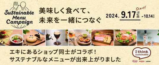株式会社JR東日本クロスステーション デベロップメントカンパニー(所在地:東京都渋谷区、カンパニー長:杉村 晶生)は、運営する商業施設「エキュートエディション御茶ノ水・有楽町・新橋」「マーチエキュート神田万世橋」「リエール藤沢」「五反田駅店舗」にて、2024年9月17日(火)~10月14日(月・祝)の期間、ショップ同士が施設の垣根を越えてコラボレーションしたオリジナルのサステナブルメニューを展開する「Sustainable Menu Campaign」を開催します。