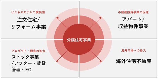 当社は、主力となる分譲住宅事業で培ったKEIAIプラットフォームの活用によるDXやグループ経営によるシナジー発揮など、当社グループの強みを梃子に住宅関連の新たな事業領域への展開を積極的に進めてまいります。(※1)