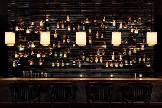 「ウィスキーバー」をコンセプトとした店内には、陶磁器タイルで装飾したシェルフに、ウィスキーボトルがアートのように並びます。北は北海道、南は沖縄まで、全国の蒸留所から選りすぐった逸品はもちろん、世界中のウイスキーを擁しています。心地よい音楽の流れる洗練の寛ぎ空間で、地元の蒸留酒や日光の豊かな自然と文化からインスパイアされたシグネチャーカクテルも提供し、華やかな時間を演出します。