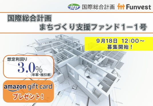 「未来をわかちあう投資」を提供する「Funvest(ファンベスト)」(以下、Funvest)は、「国際総合計画 まちづくり支援ファンド1-1号」(以下、本ファンド)の募集を9/18より開始しますので、お知らせいたします。
