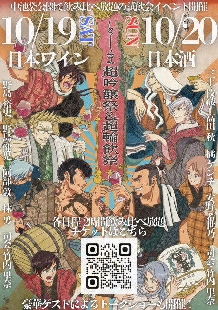 日本ワイン、吟醸酒が2時間飲み比べ放題の野外試飲会イベントの新情報が解禁!各日程のトークショー出演者や出展ワイナリー、酒蔵の新情報も発表いたします。豊島区の飲食店へのイベント招待も企画しております。