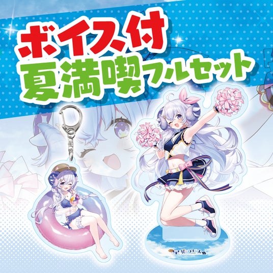 チアラピスアクリルスタンド、ぷかぷかアクリルキーホルダーに加えて、チアボイス(朝、昼、夜、+α)と海辺でデートボイスがセットになった夏満喫セット。