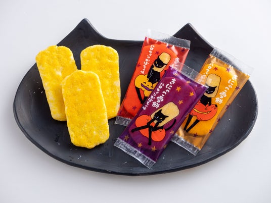 ハロウィンの楽しみの一つは「トリックオアトリート(お菓子をくれなきゃいたずらするぞ)」でもらえるお菓子の数々。クッキーやチョコレートに偏りがちになるなか、国産米100%の『きにゃこ雪餅 ハロウィンかぼちゃ味』はほかにはない美味しさで喜んでいただけること間違いなしです。